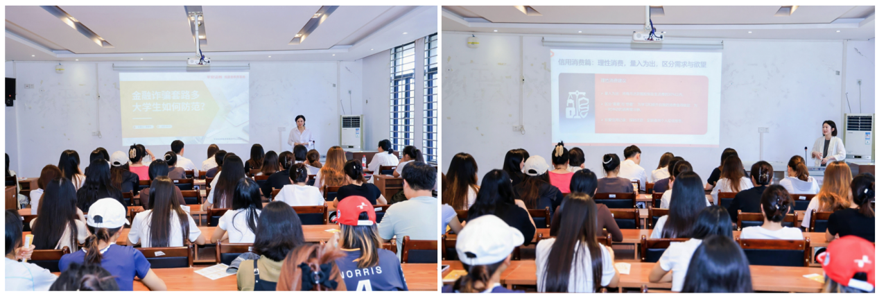 在“金融诈骗套路多,大学生如何防范”讲座中,讲师结合当前金融诈骗的常见手段和典型案例,详细讲解了大学生在日常生活中可能遇到的各种金融风险。从网络诈骗到非法校园贷,从虚假投资到个人信息泄露,一一剖析,为学生们提供了实用的防范技巧和应对策略。学生们积极参与讨论,纷纷表示收获颇丰。