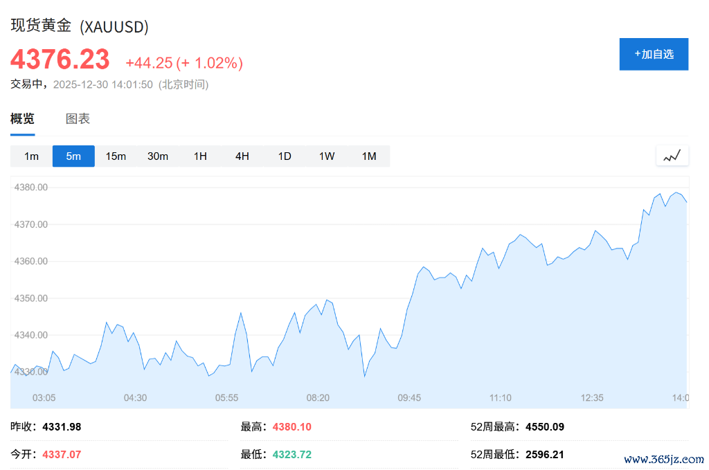 现货黄金一度涨超1.5%,触及200小时均线后回落,美联储会议纪要后涨幅进一步缩窄、逼近昨日纽约尾盘价格4335美元附近。该金属周一曾下跌逾4%。贵金属市场的大幅震荡凸显出年底交投的不确定性。